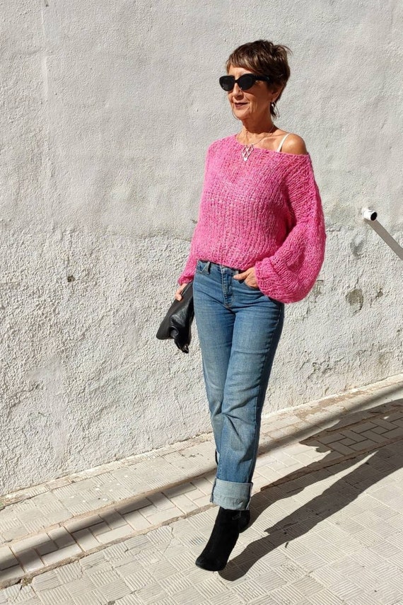 Hot Pink Sweater Lightweight Pink Alpaca Sweater For Women Etsy
