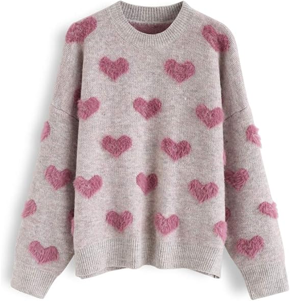 Chicwish Women S Comfy Casual Pink Fuzzy Hearts Knit Sweater Pullover Sweatershirt Amazon Ca Clothing Shoes Accessories